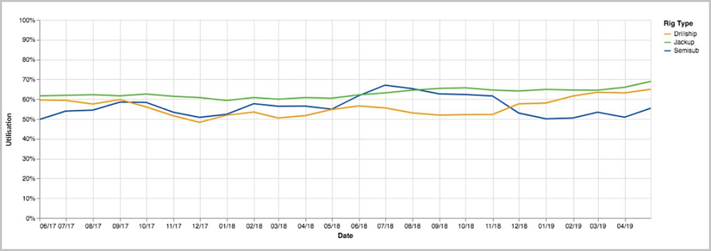 However, whilst some regions show positive signs of recovery, overall activity for the fleet as whole is taking time to recover. So far, 2019 utilisation growth has been encouraging but there is still room for improvement. Overall working, marketed jackup utilisation is now nudging 70% compared to 60% only one year ago.