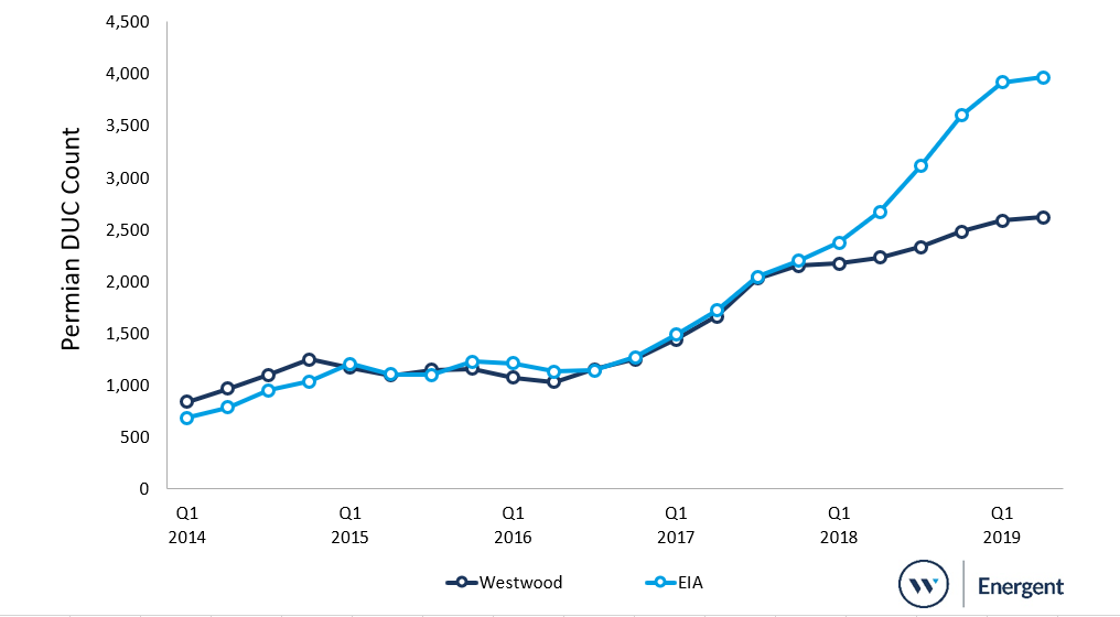Figure 1: EIA and Energent Permian DUC comparison Source: EIA, Energent data and analysis