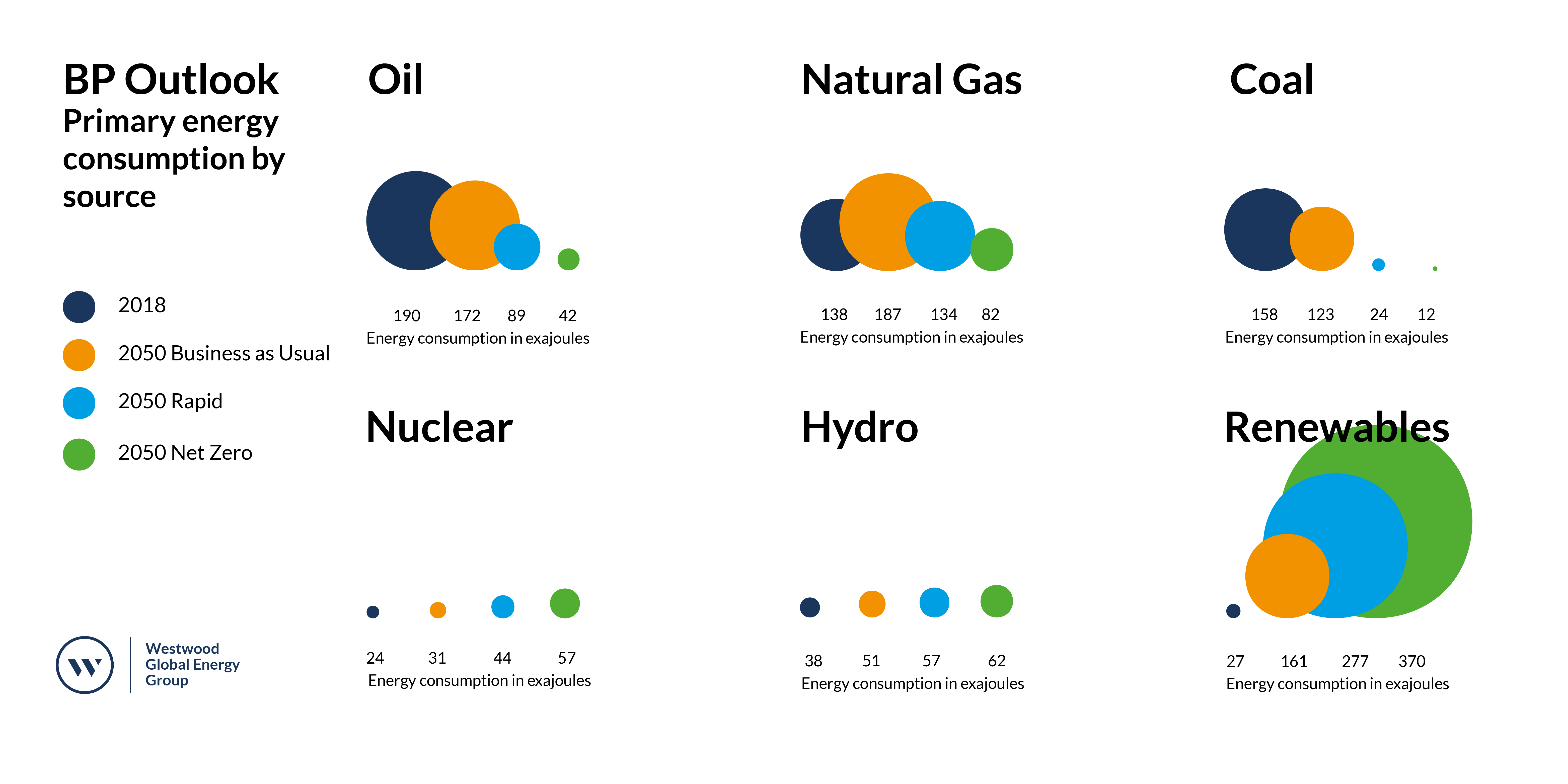 BP’s 2050 Net Zero outlook for renewable energy consumption increase