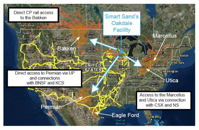 Smart Sand (NASDAQ: SND) filed for an IPO in October of 2016 and operates a sand mine and processing facility in Oakdale, Wisconsin with access to all major basins. Of the company’s current reserve mix at the Oakdale facility; 81% is comprised of 40/70 and 100 mesh Northern White sand. The company expects to develop in-basin transload facilities to reduce delivery costs and have more reliable delivery times.