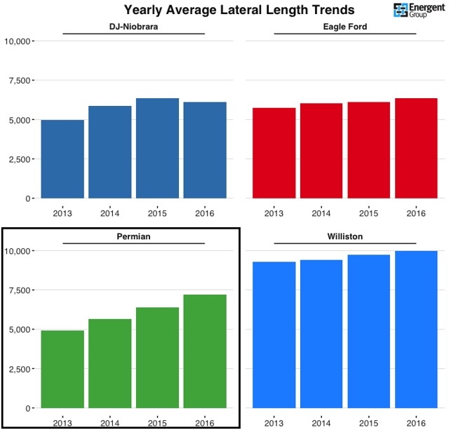 Horizontal wells in the Permian basin average 7,500 foot laterals and 11 million pounds of proppant on average. In 2017, expect laterals to grow slightly as companies test out 2 mile laterals in some areas. With the price of oil coming back are operators ready to ramp up activity how will this impact sand companies in 2017?