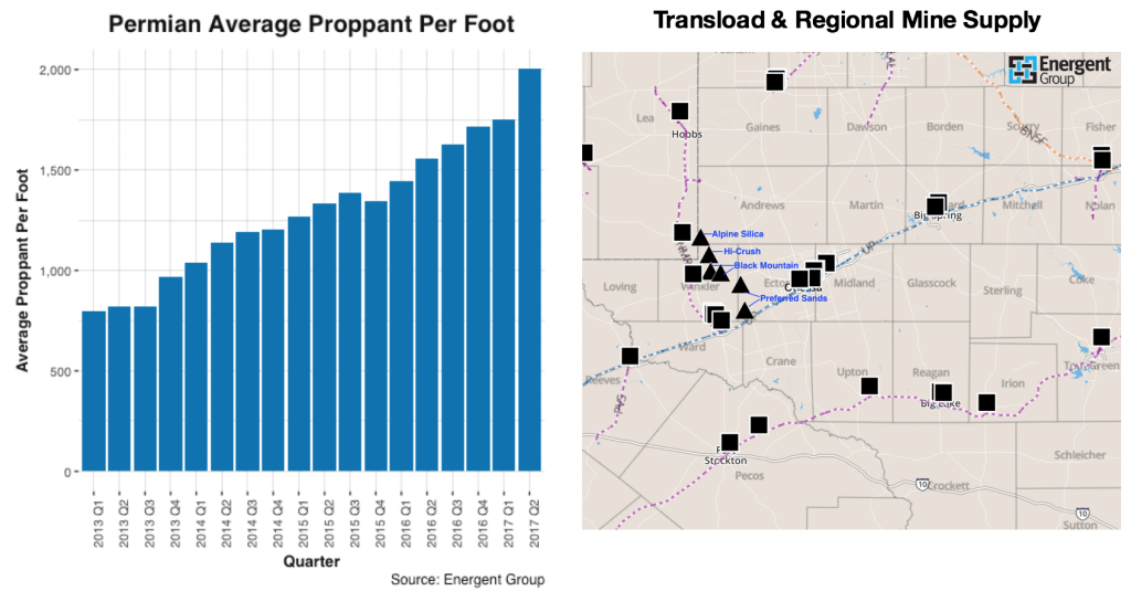 The local in-basin sand mines will not require rail cars to transport the sand to transload facilities. Instead, each mine will be prepared with truck load-out capabilities. Trucking prices have already increased 35% from August 2016 to August 2017. With additional mines expected in 2018, frac sand companies are locking in longer term contracts for logistics.