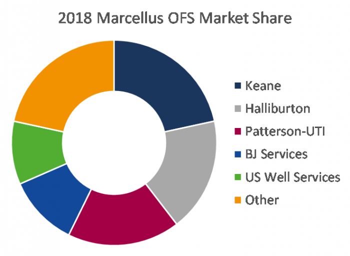 Although Halliburton admits to hearing “talks” of a back half 2018 slowdown, Marcellus OFS market share leader Keane says it has yet to see any impact on its utilization rates and expects them to hold steady through the year’s end. The company has 35% of its fleet running across the entire US Northeast. The company deployed the first of three newbuild fleets in June within the basin.
