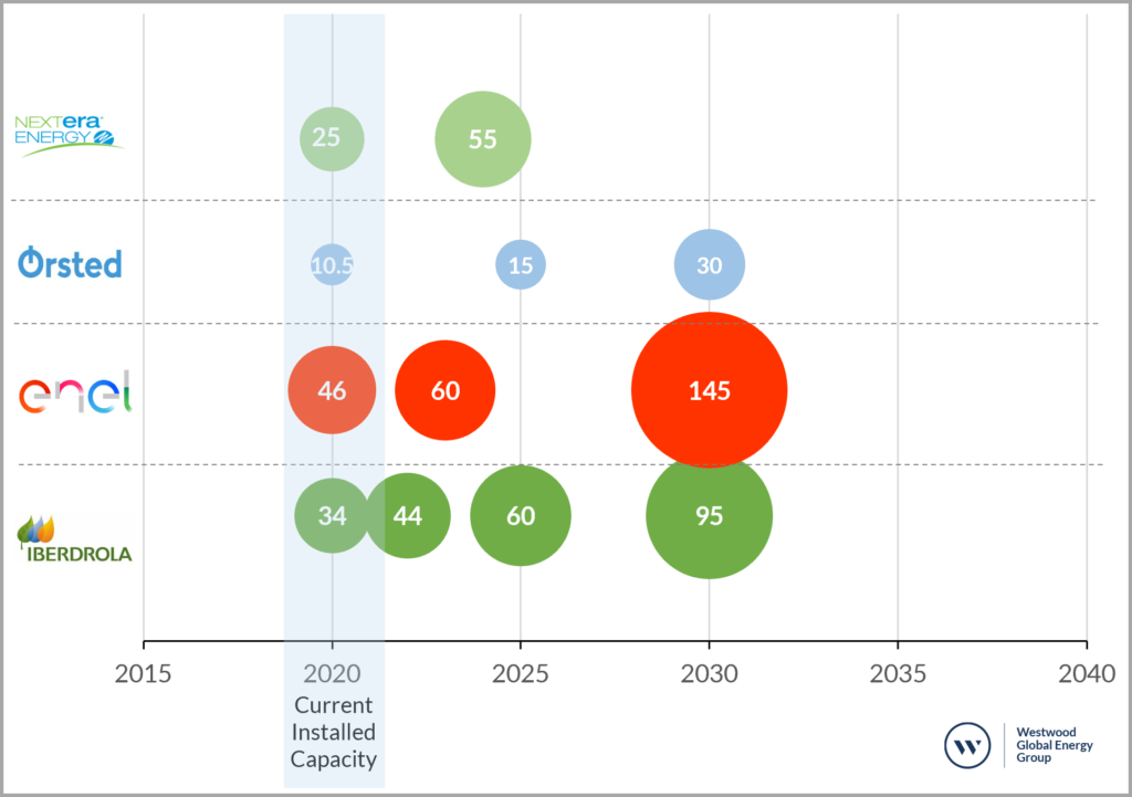 The oil and gas companies may have been grabbing the recent Energy Transition headlines, but the ‘clean energy supermajors’ like Enel, Iberdrola, Ørsted and NextEra have already gone through their own transition and have c. 118 GW of installed renewable capacity.