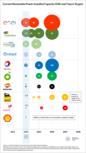 Figure 2: Clean Energy Super Majors Current Renewables Installed Capacity (GW) and Future Targets