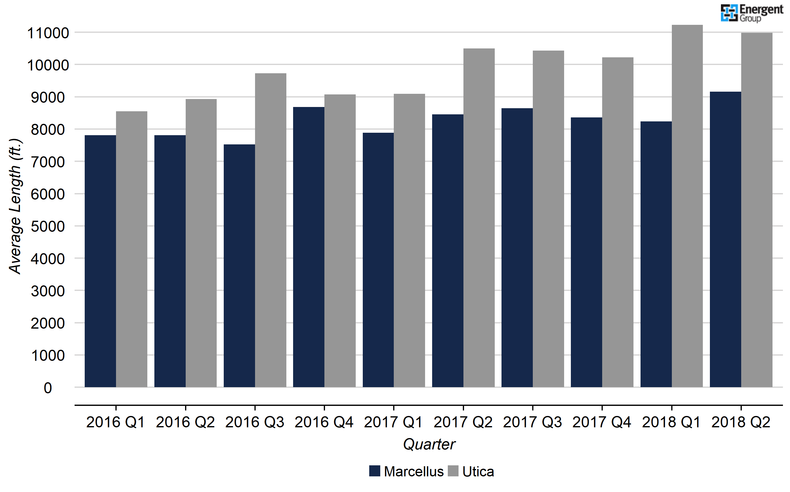 Figure 1: Average Lateral Length by Quarter in Marcellus and Utica Source: Energent Group