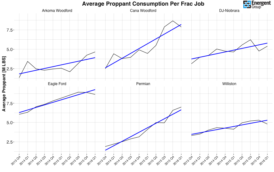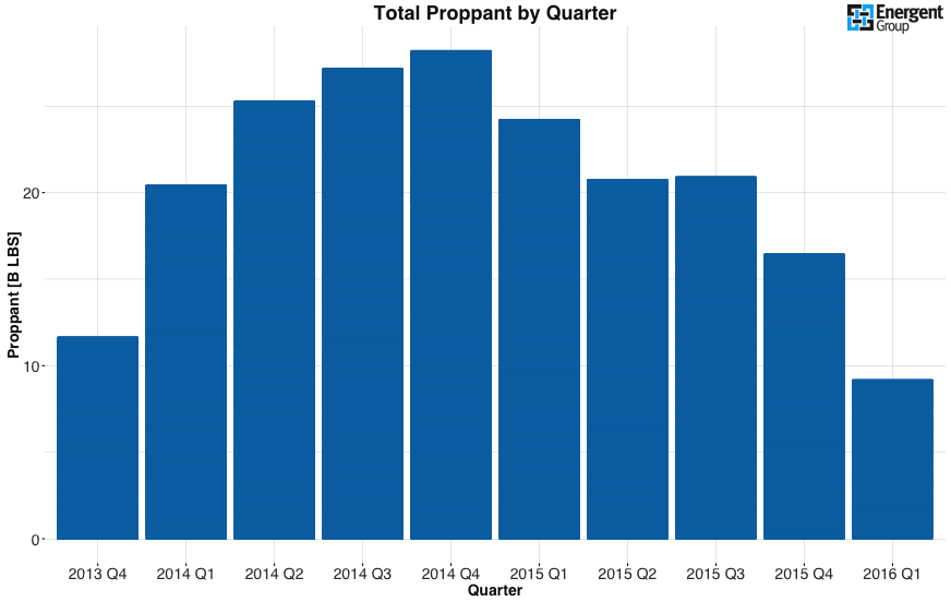 As oil prices improve, the demand will increase substantially due to the increase in proppant used per well which is now on average over 3000 tons per job. The longer laterals and increased proppant per well has likely softened the impact of increased DUCs and lower well completion counts across the U.S.