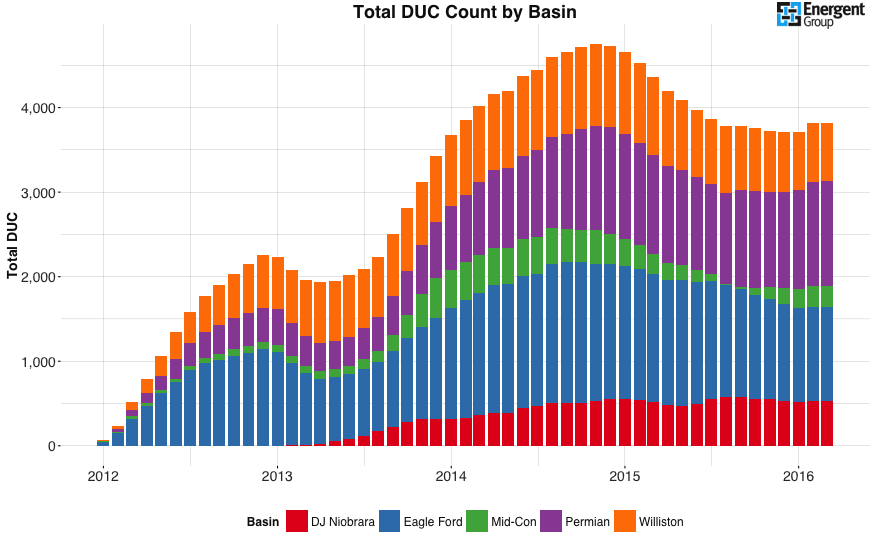 Drilled but uncompleted (DUCs) wells have been a highly debated topic during 2015 and into 2016. Many operators have grown a large inventory of uncompleted wells that still need to be completed. Some wonder if those wells will be completed first and if they will even have a substantial impact to production once they are brought online.