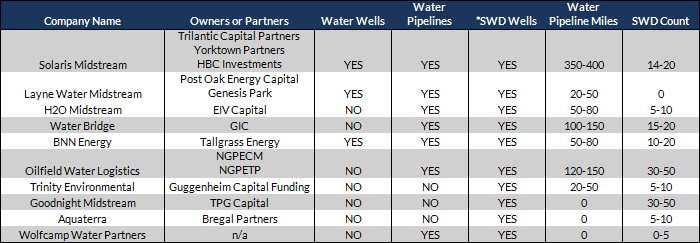 Produced water management costs have significantly increased for operators due to the rising number of truckloads per well required and a shortfall of available disposal or treatment capacity within reasonable distance. Pricing for disposal via road tankers currently ranges between $0.30 to $2.00+ per barrel depending on available supply, location of salt water disposable wells and local area regulations. Numerous service companies and operators have filed additional salt-water disposal well permits to handle the increase in produced water. Additionally, investment in water infrastructure created a new “water midstream” service company category.