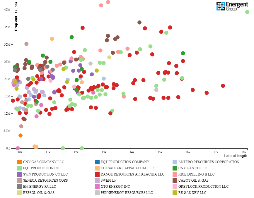 Appalachian operators, like Range Resources, Antero Resources, and EQT, continue to talk about reductions in cost per foot while maintaining or increasing EURs. More importantly, it has yet to be seen if proppant loads will increase simultaneously with longer laterals, and how that will impact the well economics and total well costs.