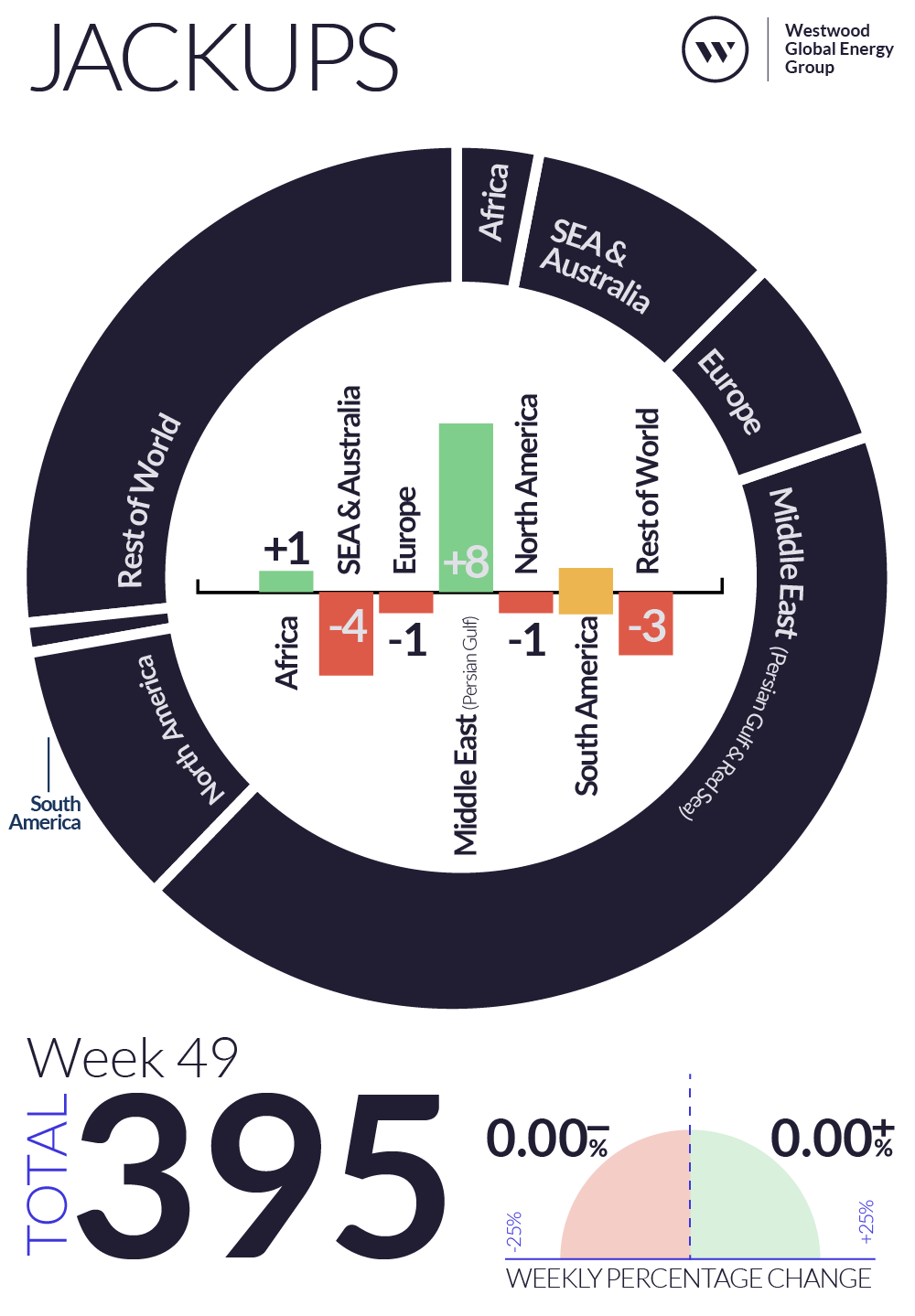 The global offshore rig count for jackup and floating rigs for week 49 as of Monday 5th December, 2022